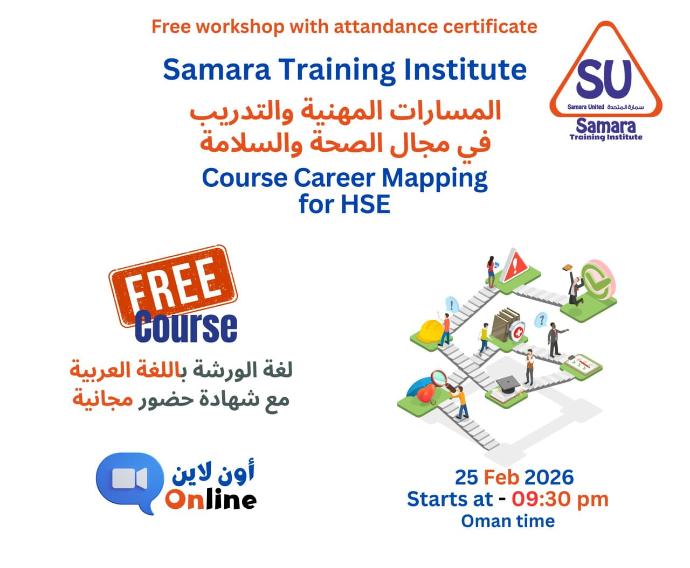 التسجيل لحضور ورشة المسارات المهنية في مجال الصحة والسلامة